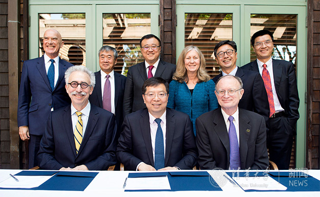 在伯克利加州大学,邱勇一行受到校长杜宁凯(NicholasDirks)教授的热情欢迎。邱勇在会谈中表示,清华和伯克利的交往源远流长,互为战略合作伙伴。近年来,两校发挥各自优势,携手创建清华-伯克利深圳学院、清华-伯克利能源与气候变化联合研究中心等重要合作平台,对于促进两校师生交流合作、深化中美教育交流都起到了举足轻重的作用。杜宁凯对邱勇为两校合作给予的支持表示感谢,他回顾了两校在学术交流、联合研究、合作办学等多个领域取得的重要成绩,并表示对两校合作前景充满信心。伯克利科研副校长保罗·阿利维萨托斯(Paul Alivisatos)、工学院院长山卡·萨斯绥(Shankar Sastry)等参加会谈,双方深入探讨了两校的全方位战略合作。