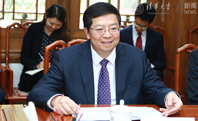 邱勇介绍清华国际发展战略和人才培养情况。记者 苑洁 摄