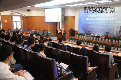 6月16日下午, Rader法官在明理楼模拟法庭做主题为《计算机软件的可专利性:重新陷入混乱的美国专利法》的学术讲座。除了清华本校学生外,校外许多律师事务所、专利代理所的律师以及其他高校的教授慕名前来参加了讲座。