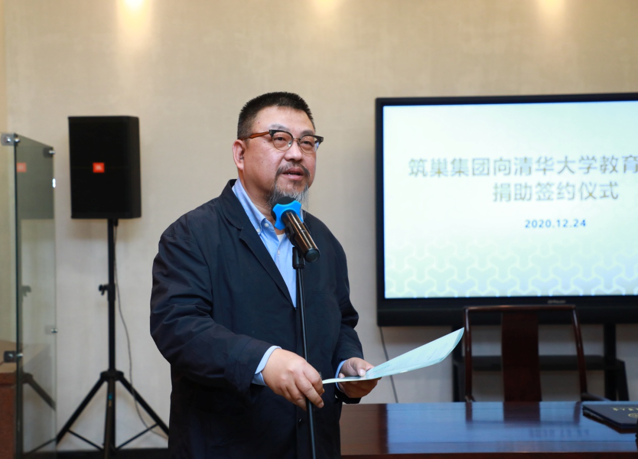 袁桅感谢筑巢集团捐赠支持“学年奖”。她表示,筑巢集团已连续五年支持“学年奖”,这种持之以恒的公益精神令人尊敬、感动,也切实激励、培养了一代代青年人才。她回顾了疫情期间清华美院参与发起的“以艺抗疫”公益活动,并表示清华基金会将与清华美院及筑巢集团共同探索创新的公益模式,充分发挥清华的文化、科技底蕴,积极推动人居环境领域的教学、科研、交流合作,为“学年奖”的平台运营提供强有力的支持,为清华时代精神的发扬添上浓墨重彩的一笔。