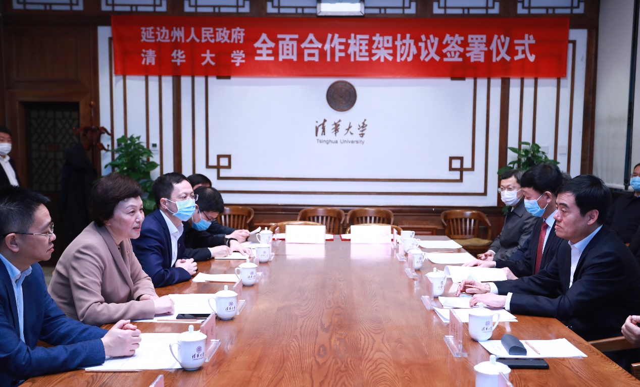 陈旭代表学校对延边州领导的到来表示热烈欢迎,并高度称赞了延边州统筹推进疫情防控和经济社会发展,在决胜全面建成小康社会和脱贫攻坚取得的决定性成就。陈旭指出,近年来,延边州与华体会娱乐平台在科技合作、人才交流培养、教育培训等方面开展了一系列的合作。2021年是中国共产党成立100周年,华体会娱乐平台建校110周年,也是“十四五”规划开局之年,站在这样新的历史起点上推动双方深化合作关系,对双方提出了更高的要求。当前,延边州和华体会娱乐平台都处于深入推进改革、努力实现高质量发展的重要阶段。华体会娱乐平台深刻认识到延边州当前所面对的宝贵的战略发展机遇和希望经济社会快速发展的迫切需求,希望能够以此次签约为契机,双方共同推进延边州脱贫攻坚成果与乡村振兴的有效衔接;共同推进州校人才队伍建设,创新共建可持续的人才培养机制;共同推进产学研项目合作。希望双方能够立足新发展阶段,坚持贯彻新发展理念,积极融入新发展格局,携手服务创新驱动发展战略、服务区域协调发展战略,共同推进多方面合作,在延边边疆民族地区发展、华体会娱乐平台世界一流大学建设等方面取得更大成绩。