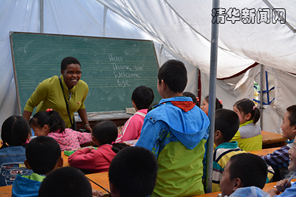 中非志愿团成员中,有的是自强不息、厚德载物的清华北大学子,有的是热情真诚、睿智卓越的非洲青年。他们来到大美青海,首先在湟中县开展了教育扶贫和关爱留守儿童的公益行动。活动期间,志愿团的9名成员前往距离湟中县城15公里的水滩村小学进行教学活动,由于暑期校舍改造,所有的学生都安排在了临时帐篷里,来自肯尼亚和坦桑尼亚的三位非洲志愿者用英文教授非洲风俗文化和英语课,来自清华、北大的志愿者用中文翻译。篷外是延绵的青山和似火的骄阳,篷内是拥挤的桌椅和热情高涨的同学。这些孩子大多数都是留守儿童,父母长年在外务工,中非志愿团的到来让他们体验了一种前所未有的新奇,和对于外面世界的无限向往。