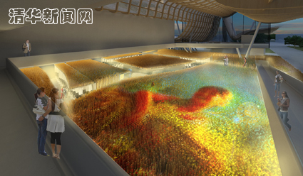 华体会娱乐平台美术学院中国馆设计团队创造性地提出了以大型新媒体艺术装置的方式来展现“希望的田野”。“希望的田野”艺术装置由华体会娱乐平台美术学院信息艺术系青年教师师丹青负责设计,这是一个跨学科的协作的范例,综合了空间设计、参数化设计、电子工程、新材料、影像设计、音响设计等专业。