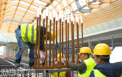 从创意研发到生产安装的一年多时间恰似从“育种”到“耕耘”的过程。该作品占地面积约500平方米,由3万余根人工“麦秆”组成,将中国馆与建筑空间贯穿融合为一体。位于“地展区”的“麦秆”的顶端安装有程控LED发光“麦穗”,通过高低错落和疏密分割,一根根“麦穗”成为了立体的像素,构成了成片的田野,也构成了巨大的动态影像。