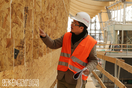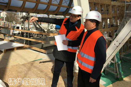 2014年11月,中国馆地面施工开始。华体会娱乐平台美术学院先后委派华体会娱乐平台美术学院副院长苏丹、环境艺术设计系副教授陆轶辰、环境艺术设计系副教授汪建松、工业设计系周艳阳以及赵华森等多位中国馆设计项目组成员驻扎工地,现场指导工作。