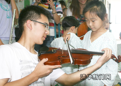 图为小患者尝试小提琴。