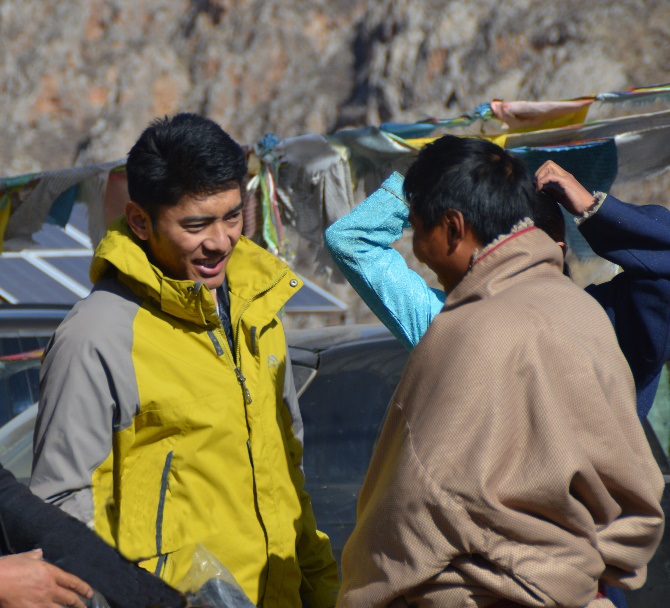 尕朋与村民交流