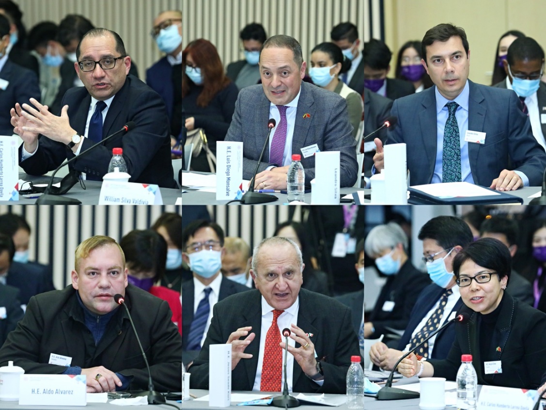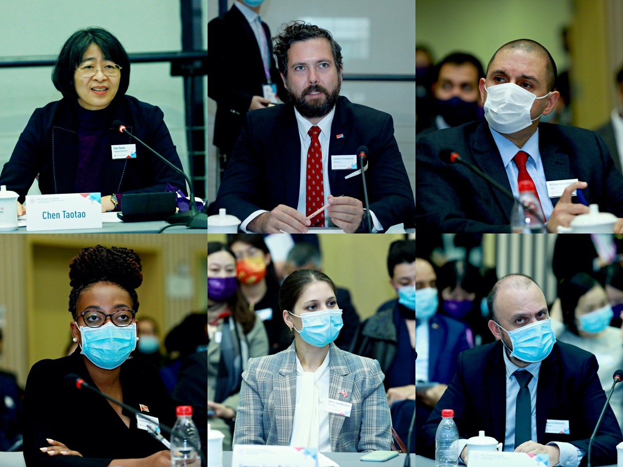 在圆桌讨论环节,大使们聚焦主题报告内容以及中国经济发展模式、中国的五大新发展理念、气候变化、碳中和、高等教育合作、国际贸易与基础设施建设投资等话题展开了深入讨论。与会大使表示,今天的活动促进了他们对于创新、协调、绿色、开放、共享的发展等新理念的理解,无论身在哪个国家,这些都是对人类共同发展普遍有益的关键话题。中国的发展模式是真正独一无二的,是政治、经济、文化等各方面的有机结合,是从一系列实践和探索中诞生的可行的发展路径。“十四五”规划是中国中长期战略的一个重要组成部分,也是中长期战略实现的有效工具,值得拉美国家学习和借鉴。