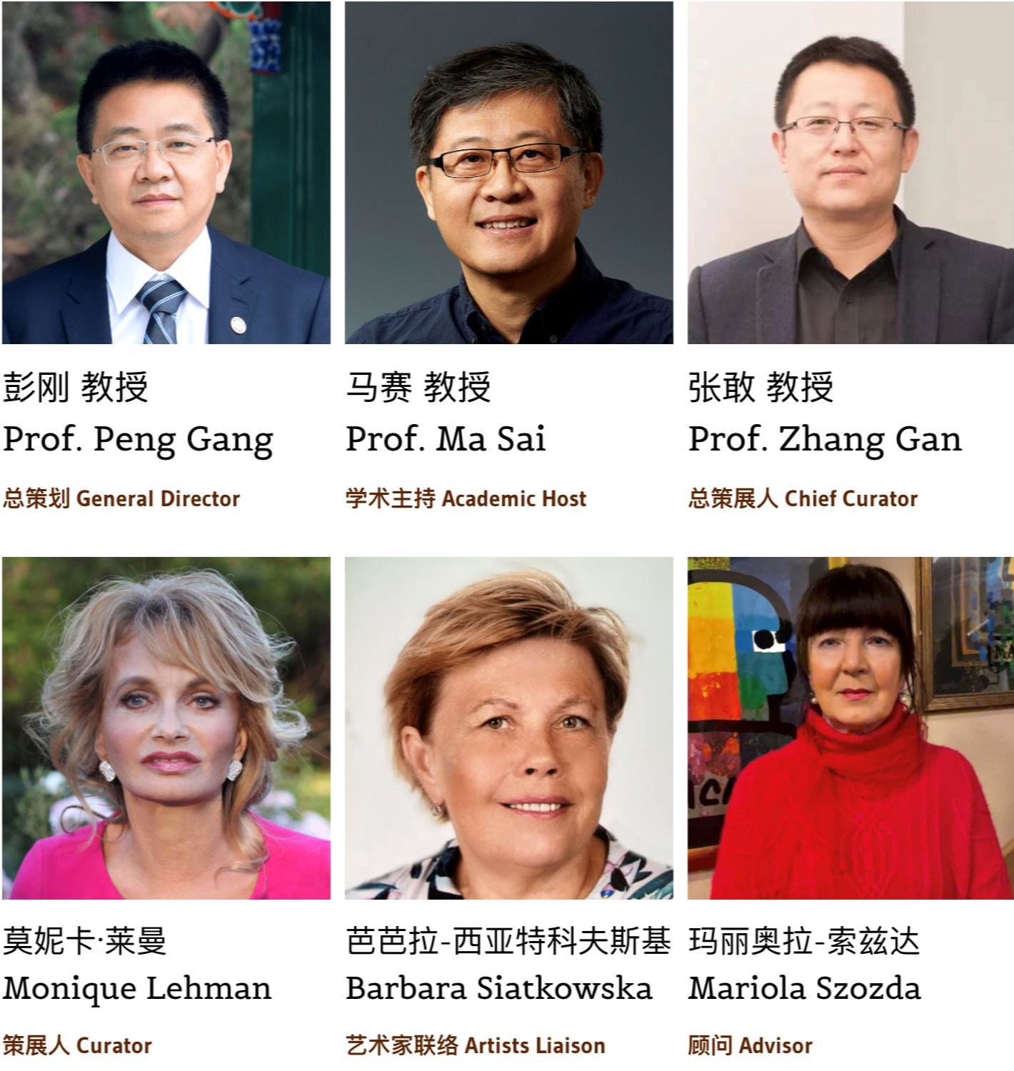 策展团队由彭刚担任总策划,美术学院党委书记马赛担任学术主持,美院当代艺术研究所所长张敢担任总策展人,莫妮卡·莱曼担任策展人,芭芭拉·西亚特科夫斯基负责艺术家联络,玛丽奥拉·索兹达担任顾问。工作人员团队由梁开、王瀚生、孟彤、孙博闻、尤维塔·撒克朗斯凯特(Jovita Sakalauskaite)组成。