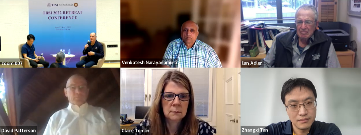 大会特邀嘉宾大卫·帕特森教授作主题为“伯克利在电气工程与计算机科学方向的研究生教育方法”的演讲。之后,TBSI共同副院长陈伟坚教授分享了目前TBSI学生的培养体系,并邀请来自UCB的大卫·帕特森教授、克莱尔·汤姆林(Claire Tomlin)教授和伊兰·阿德勒(Ilan Adler)教授以及来自TBSI的尔江(Ercan Engin Kuruoglu)教授和谭章熹博士进行了课程回顾的讨论。
