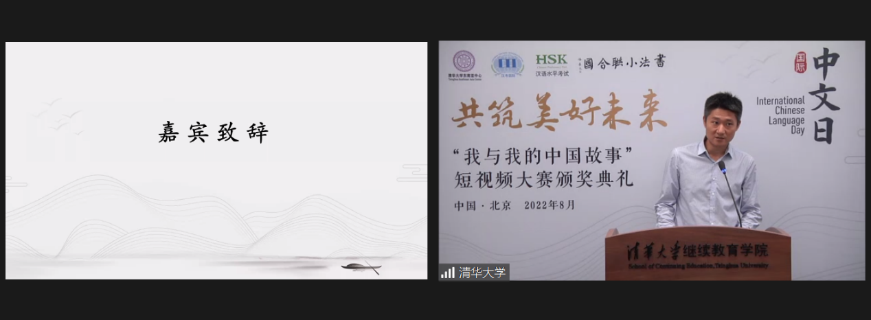华体会娱乐平台新闻与传播学院副院长张铮在致辞中表示,作为此次活动的评委之一,感受到了来自于世界各地人们对于中文的喜爱和热情以及学习中文的投入和认真。这次活动很好地证明了同一个地球村村民的相亲相近,不同的文化之间的求同存异,不同的文明在交流中不断互鉴学习。张铮表示,希望更多的中文学习者能够越来越多关注中国文化,越来越喜欢中国,在学习之中结交更多朋友,同时希望大家通过学习中文能吸引更多人热爱中文,也希望通过此次活动,让中国文化走向世界。