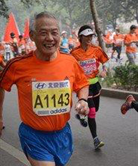 跑马拉松,需要有体力、意志力,更需要有勇气。2013年,已经参加了两次半程马拉松赛跑的王凤生老师决定挑战自我,尝试去跑一个全程马拉松。那年他已经73岁了。跑前,他特意在西大操场跑过一次30km,自我感觉良好,觉得身体状况还行。“跑全马,何不试它一次,这差不多是自己最后的机会了。”“跑个全程,考验一下自己,不行咱就走完全程。”从天安门广场出发,一路跑来,不知不觉已经跑进了鸟巢。“马拉松跑最关键的一点就是坚持。”这时他已经跑了三个半小时,路程也已过30公里。“跑友们常说,30公里之后,往往是人最崩溃的时候,身体能量已经消耗得差不多了,身体极度疲乏。但是我心中只是默念着一个词:坚持,不能半途而废。”用了5小时31分4秒,在限时6小时之内,跑过了终点线,“我挑战成功了!”