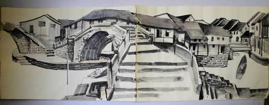 我们有幸在采访时欣赏了程老师多年来的作品,其中既有漆画也有大量的油画,有上千张油画写生,水墨、素描和黑白画作品,足迹遍及祖国大江南北。他每年暑假都会带着学生下乡写生,去过甘南7、8次,平均每天3张油画写生,“比学生还勤奋”。程老师笑谈在工作的时候丝毫没有觉得自己是一个艺术家,而是一个普通的劳动者,在作漆画时没有一点潇洒的感觉,脏兮兮的,气味儿又大,并谦逊地感慨“我做事儿感觉投入很多、很大,但见效还是比较缓慢的”。