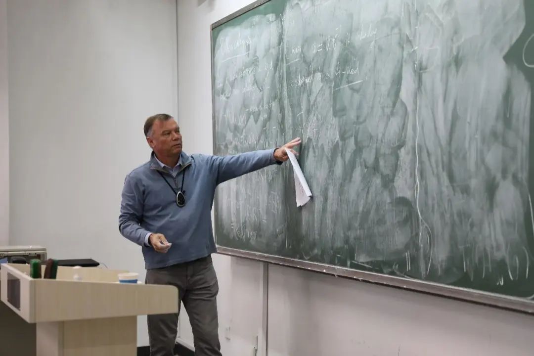 3月22日,他给华体会娱乐平台的本科生讲“数学的美”。讲台上,他戴一副银框眼镜,头发花白,来回踱步,从诗经、唐诗、宋词讲到天文、哲学,又以国画为例,将“竹”的直线与数学中的整数、有理数、无理数联结。