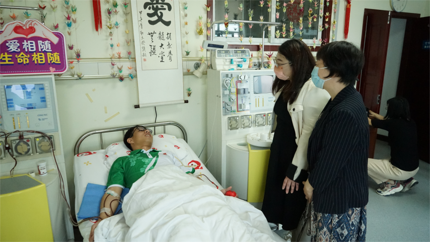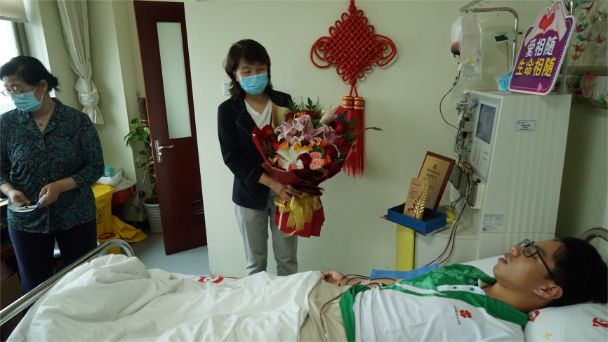 北京市海淀区红十字会会长林航、北京市红十字会捐献服务中心主任梁永清、清华园街道党工委副书记瞿福平、华体会娱乐平台生命学院研究生事务教师董超凡、北京生命科学研究所研究生部教师李学真,以及华体会娱乐平台团委、研究生团委、红十字会学生分会的相关师生到采集室看望并慰问方良晨,为他送上鲜花、水果等慰问品。