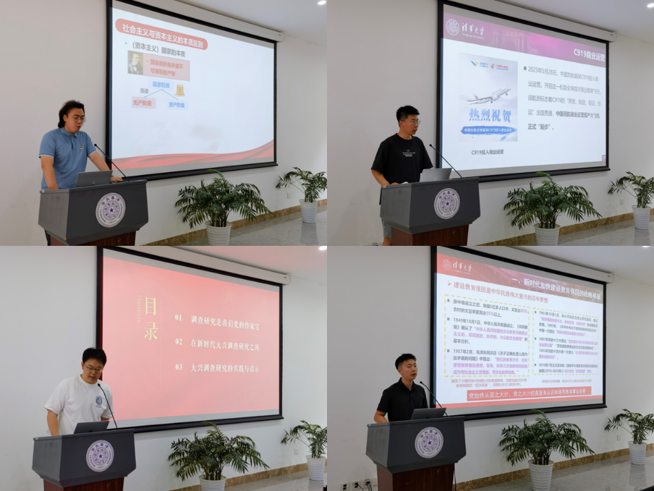 学员们围绕读书感悟和党建工作的创新经验展开研讨。总结交流环节,四个小组的学员分别以“什么样的世界观方法论能够建设好中国特色社会主义”“传承长征精神:大历史观下的大飞机制造”“大兴调查研究之风”“中国式现代化视域下教育强国的战略深意”为主题,进行展示汇报,交流分享心得体会。