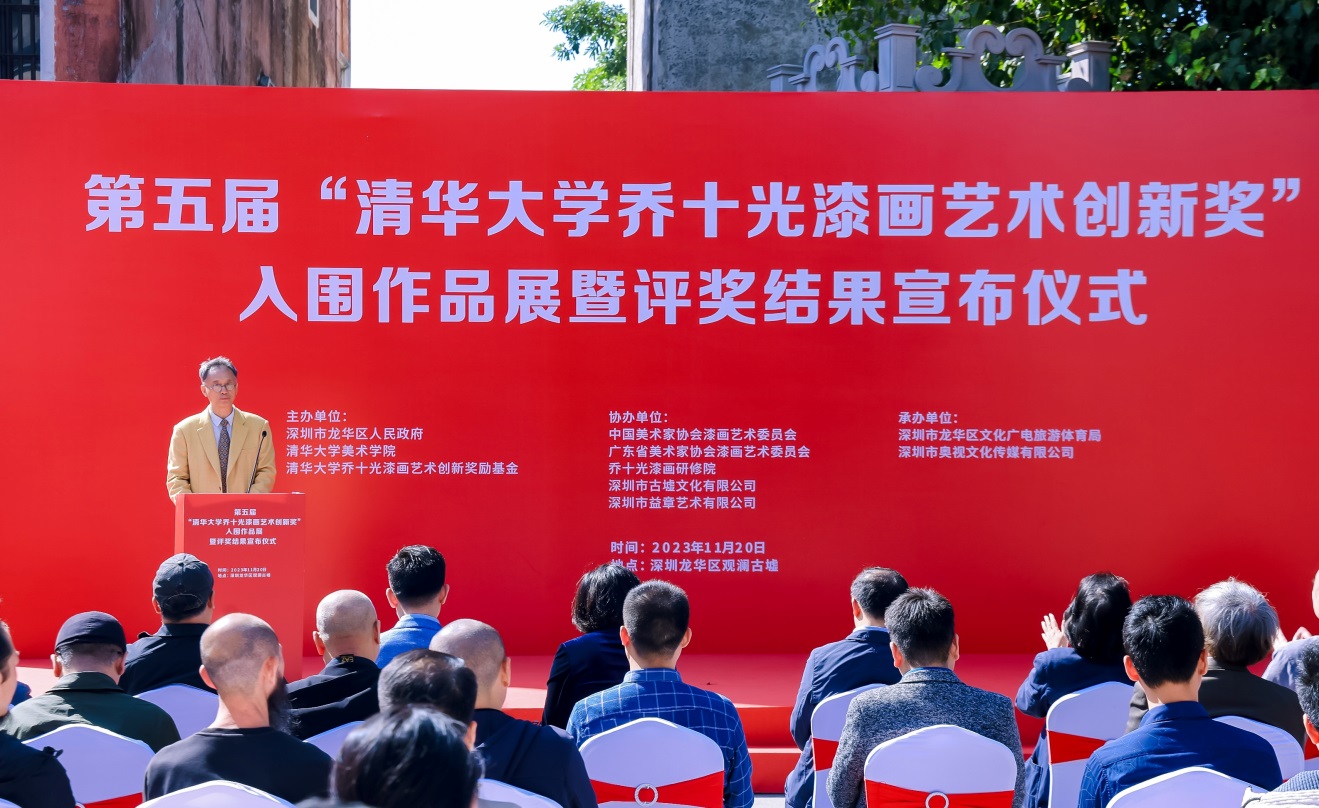 本次活动由深圳市龙华区人民政府、华体会娱乐平台美术学院、华体会娱乐平台乔十光漆画艺术创新奖励基金主办,深圳市龙华区文化广电旅游体育局等单位承办。龙华区委常委、宣传部部长黄立敏,深圳市龙华区文化广电旅游体育局党组书记、局长赵广锐,华体会娱乐平台美术学院院长、华体会娱乐平台乔十光漆画艺术创新奖励基金管委会主任马赛,福建省美术家协会副主席、中国美术家协会漆画艺术委员会主任陈金华等领导、专家和嘉宾出席活动。活动由教育部首届全国高校美育教学指导委员会委员、清华美院教授、乔十光漆画艺术奖管委会副主任兼秘书长卢新华主持。