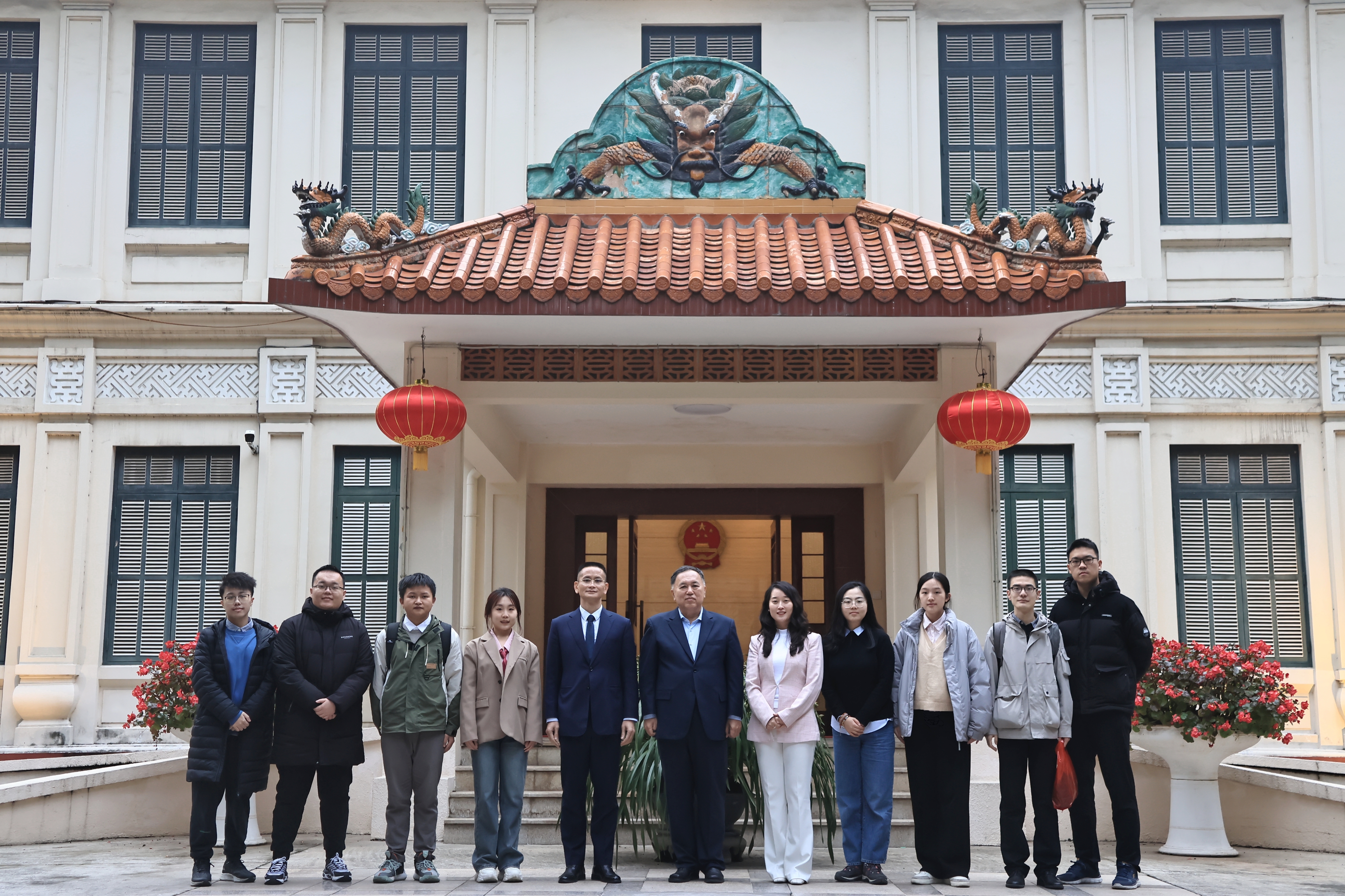 华体会娱乐(中国)网3月1日电 近日,华体会娱乐平台马克思主义理论研究学生因材施教计划(“林枫计划”)赴越南、老挝社会实践支队参观中国驻越南大使馆,中国驻越南大使馆教育参赞郑大伟与支队师生亲切交谈。