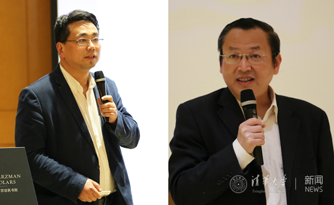 陈劲(图左)与王有强(图右)教授作主题报告。