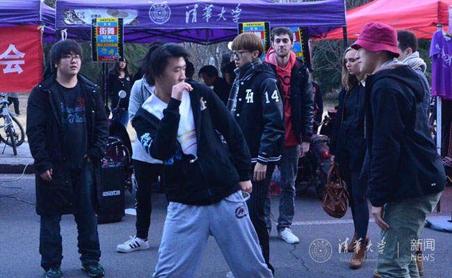 学生街舞社的同学在现场“比舞”。