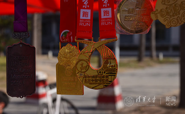 学生马拉松协会展位上的奖牌。