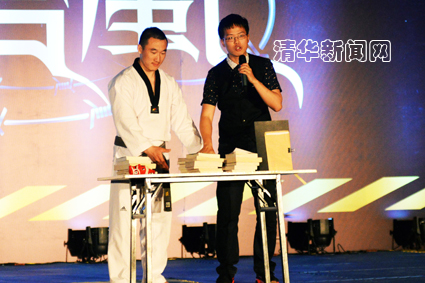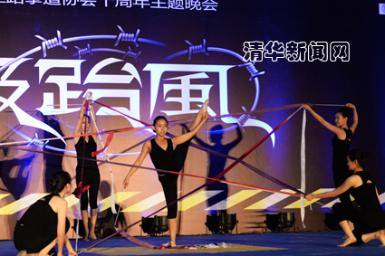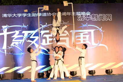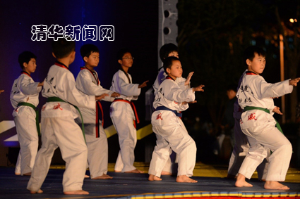 晚会还邀请来了中国跆拳道唯一示范机构——中国国家跆拳道示范团进行表演。作为中国最高水平的跆拳道表演团体,示范团团员们整齐的动作,超高难度的跆拳道特技让观众目不暇接,赢得阵阵掌声。此外,艺术体操协会、武术协会、街舞社、魔术协会等学生社团也展现了自己的保留节目,为跆拳道协会送上祝福,全面展现了清华社团人的精神风貌。
