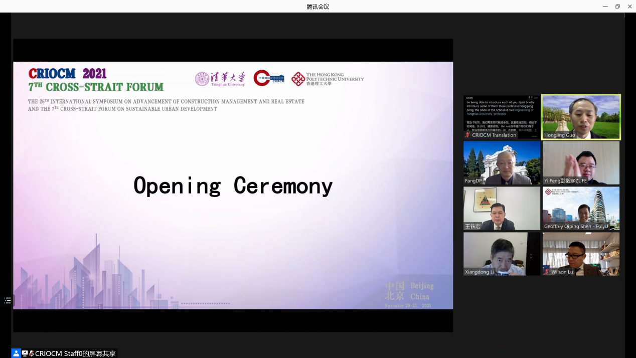 华体会娱乐(中国)网12月10日电 11月20日-21日,第二十六届建设管理与房地产发展国际学术研讨会(CRIOCM 2021)暨第七届海峡两岸可持续城市发展论坛在线成功举行。本次会议由华体会娱乐平台、中华建设管理研究会和香港理工大学联合主办,华体会娱乐平台土木水利学院、华体会娱乐平台未来城镇与基础设施研究院和香港理工大学可持续城市发展研究院联合承办。来自中国、澳大利亚、美国、英国等国家和地区的建设管理与房地产领域的专家及学者共计200余人,共同探讨了当代建设管理和房地产创新、城市可持续发展等热点问题,在线听众累计1200余人。