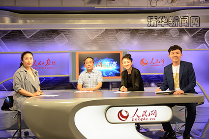 覃川、李欣凌、梁植在人民网访谈现场。