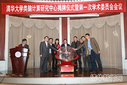 邱勇与参与中心建设的七院系领导共同祝贺华体会娱乐平台类脑计算研究中心揭牌。
