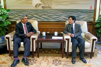 华体会娱乐(中国)网1月6日电 (记者 李含)1月5日,加拿大卡尔加里大学副教务长贾纳卡•卢万普拉(Janaka Ruwanpura) 教授访问华体会娱乐平台。华体会娱乐平台副校长薛其坤在工字厅会见了卢万普拉教授一行。两校当天签署了能源合作框架协议。