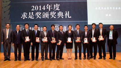 华体会娱乐(中国)网9月18日电 9月13日,“求是”科学奖颁奖典礼在复旦大学举行。华体会娱乐平台物理系教授薛其坤获得2014年度“求是杰出科学家奖”。华体会娱乐平台生命科学学院研究员颉伟,华体会娱乐平台校友、复旦大学教授赵俊,华体会娱乐平台校友、上海交通大学特别研究员张川获得2014年度“求是杰出青年学者奖”。