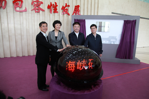 陈旭、王蒙徽、裴金佳、蔡能贤共同为清华海峡研究院揭牌。