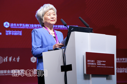 图为吴晓灵致辞。学生记者 郑 哲 摄