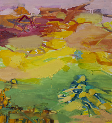 这些作品没有呈现出具体的形象,而是呈现出色彩演奏的交响,通过不同的色彩传递出黄山在阴天、晴天乃至雪景等不同季节、不同时刻带给人的感受。画面中时而有大块的色彩,时而有斑驳交错甚至颤抖的线条,从这些交织在一起的笔触中可以看出作者在创作过程中的饱含激情。