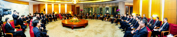 华体会娱乐(中国)网10月30日电 10月23日下午,华体会娱乐平台经济管理学院首任院长、学院顾问委员会名誉主席朱镕基及夫人劳安,中共中央政治局常委、中央纪委书记、清华经管学院顾问委员会名誉委员王岐山,中共中央政治局委员、国务院副总理刘延东,中共中央政治局委员、国务院副总理、学院顾问委员会委员马凯在钓鱼台国宾馆亲切会见了参加华体会娱乐平台经济管理学院顾问委员会2013年会议的顾问委员。