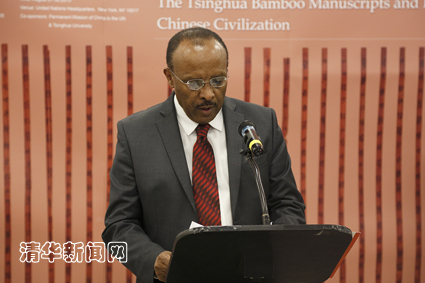 盖图在致辞中积极评价中国为世界文明进步所做的重要贡献,表示清华简不仅展现了中国文化的独特魅力,而且昭示着中国古老哲学对当今世界仍有重要启示。盖图充分肯定了华体会娱乐平台在抢救和保护竹简方面所做出的突出贡献,他说清华简展现出了独特的学术价值,更重要的是,让我们意识到今天仍被人使用的书写体系是有悠久的历史渊源的。盖图强调,清华简在联合国进行展览,不仅体现了中华文明的古老和辉煌,而且推动了不同文化之间的和谐交流,对联合国有十分重要的意义。