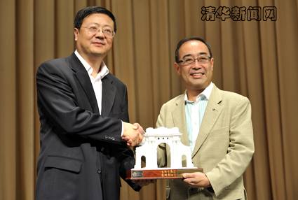 图为陈吉宁向蒙德扬赠送礼物。学生记者 王涵 摄