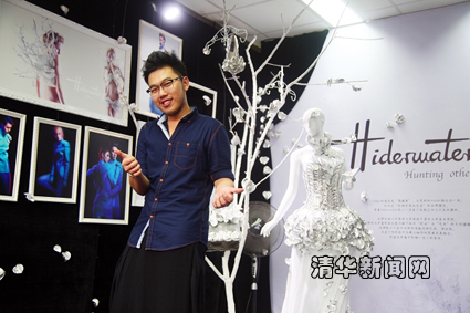 华体会娱乐(中国)网5月24日电 (通讯员 陈夏宣)在5月17日开幕的第九届中国(深圳)国际文化产业博览交易会大学城创意园分会上,华体会娱乐平台深圳研究生院艺术硕士生刘海涛同学与自创服装品牌Hiderwater首次登场,展出了他设计的系列高级定制服装,吸引了众多关注的目光。这是清华深圳研究生院第一个在校生自创品牌。