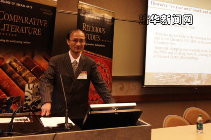 本次会议讨论的主题为“比较文学、宗教与社会:跨文化的视角”(Comparative Literature,Religion and Society: Cross-Cultural Perspectives)。会上,王宁和美国著名汉学家、中国文学翻译家葛浩文(Howard Goldblatt)分别代表中美两国学界作了主题发言。
