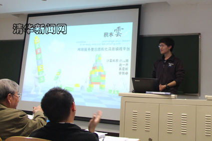 图为特等奖作品“积木云——网络服务整合图形化简易编程平台”展示。