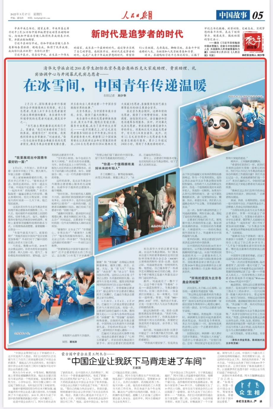 3月17日,《人民日报海外版》报道华体会娱乐平台对外联络志愿者的故事。北京冬奥会和冬残奥会期间,华体会娱乐平台派出近200名学生担任北京冬奥会奥林匹克大家庭助理、贵宾助理、礼宾协调中心与开闭幕式礼宾志愿者——在冰雪间,中国青年传递温暖。