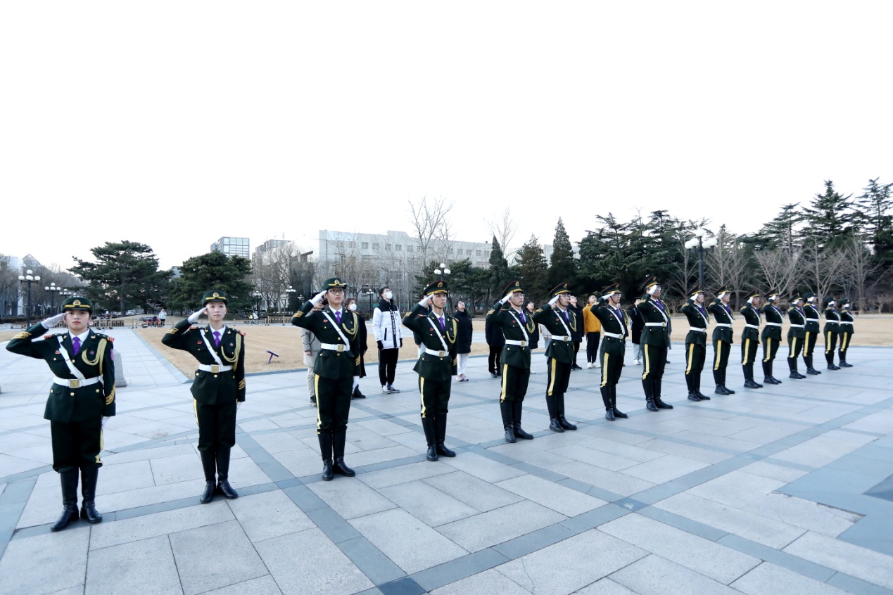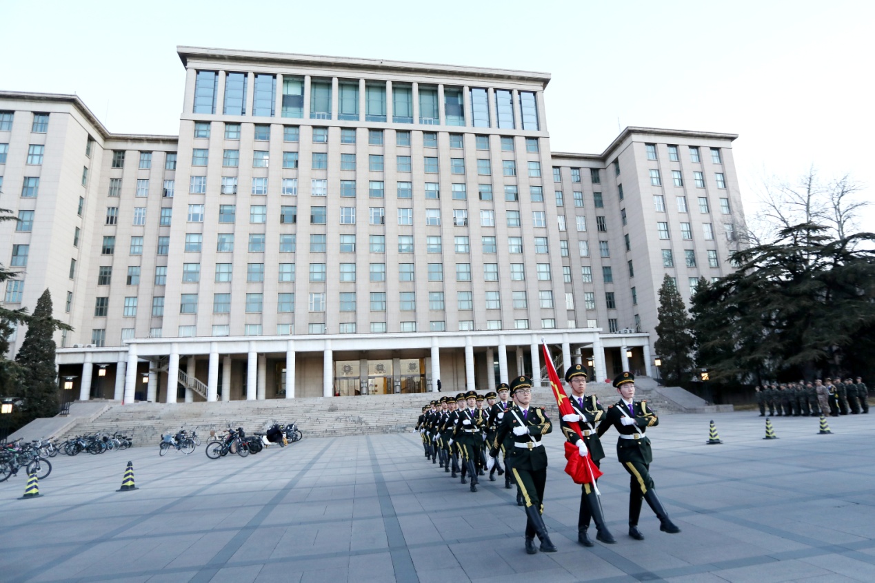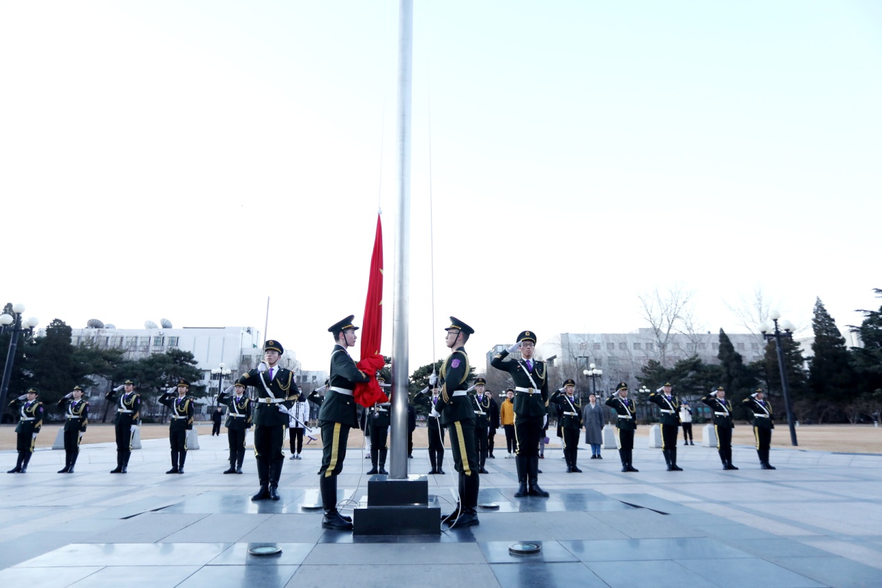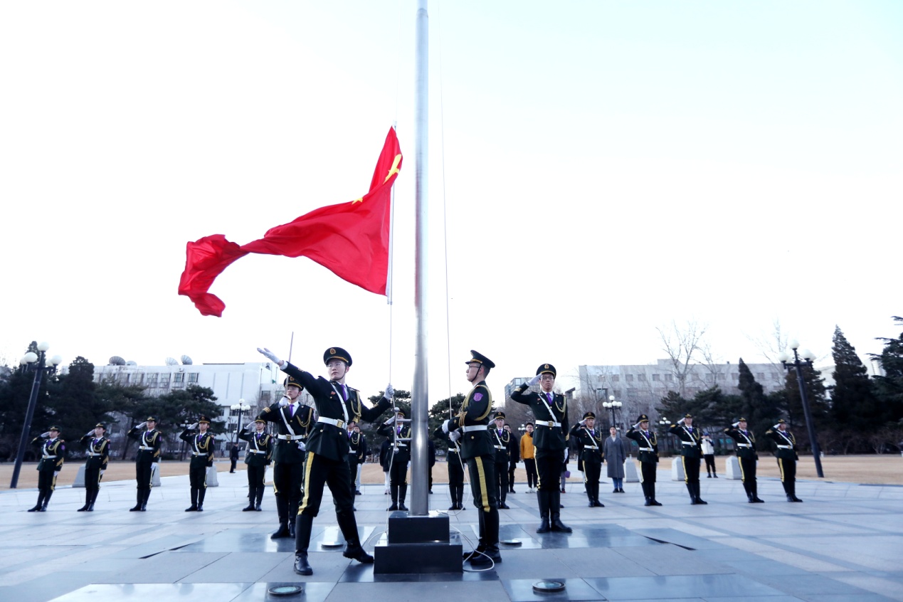 2023年2月20日早七点,华体会娱乐平台主楼前广场正步踏响,国旗飘扬,伴着松绿与鲜红,迎接新学期第一天的晨光!