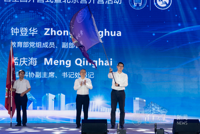 7月16日上午,2019年青少年高校科学营开营式暨北京营开营活动在北京科技大学举行。教育部党组成员、副部长钟登华,中国科协副主席、书记处书记孟庆海,以及国务院国资委、国务院港澳办、国务院台办、中科院、北京市人民政府、北京市科协、北京市教委、北京市港澳办、北京市人民对外友好协会等有关单位领导出席开营活动。校团委书记王前代表华体会娱乐平台在授旗仪式中接旗,华体会娱乐平台分营400多名营员和辅导员老师共同参加了2019青少年高校科学营全国开营式。