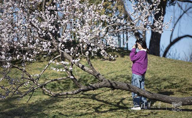 春光明媚,粉白相间的花朵枝头攒动