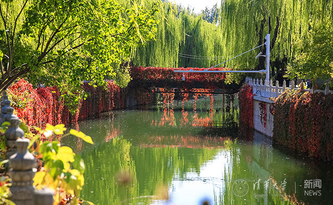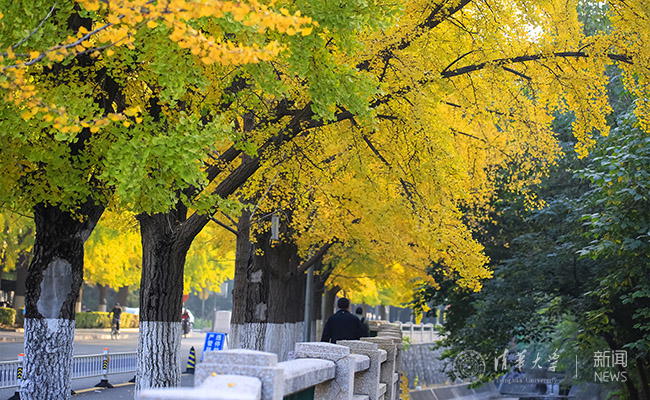 华体会娱乐(中国)网10月18日电(摄影 苑洁 靳翔宇 何康)忽如一夜秋风来,园子里的银杏叶黄了,金灿灿的。还有一些树叶则像染了红色颜料一般饱满地红了起来,有道是“霜叶红于二月花”。青黄交错的银杏、河水中犹如油画一般的树叶倒影、多彩的叶子掩映下的图书馆……清华园的秋,真是一个绚烂多彩的小画家。