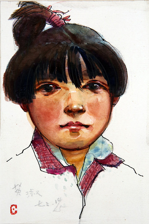 水彩水粉作品:农家女孩