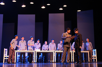 华体会娱乐(中国)网10月17日电 10月10日晚,经过国庆期间紧锣密鼓的编排筹备,华体会娱乐平台原创话剧《马兰花开》第三轮校内演出首场在新清华学堂上演,校内师生与观众近两千人观看演出。此次第三轮校内演出是在4月25-28日、5月17-19日前两轮演出的基础上,新招募部分演员同学,经过补充与微调而推出的新版本。演出成功的背后是台前幕后演职师生精心而辛苦的排练。