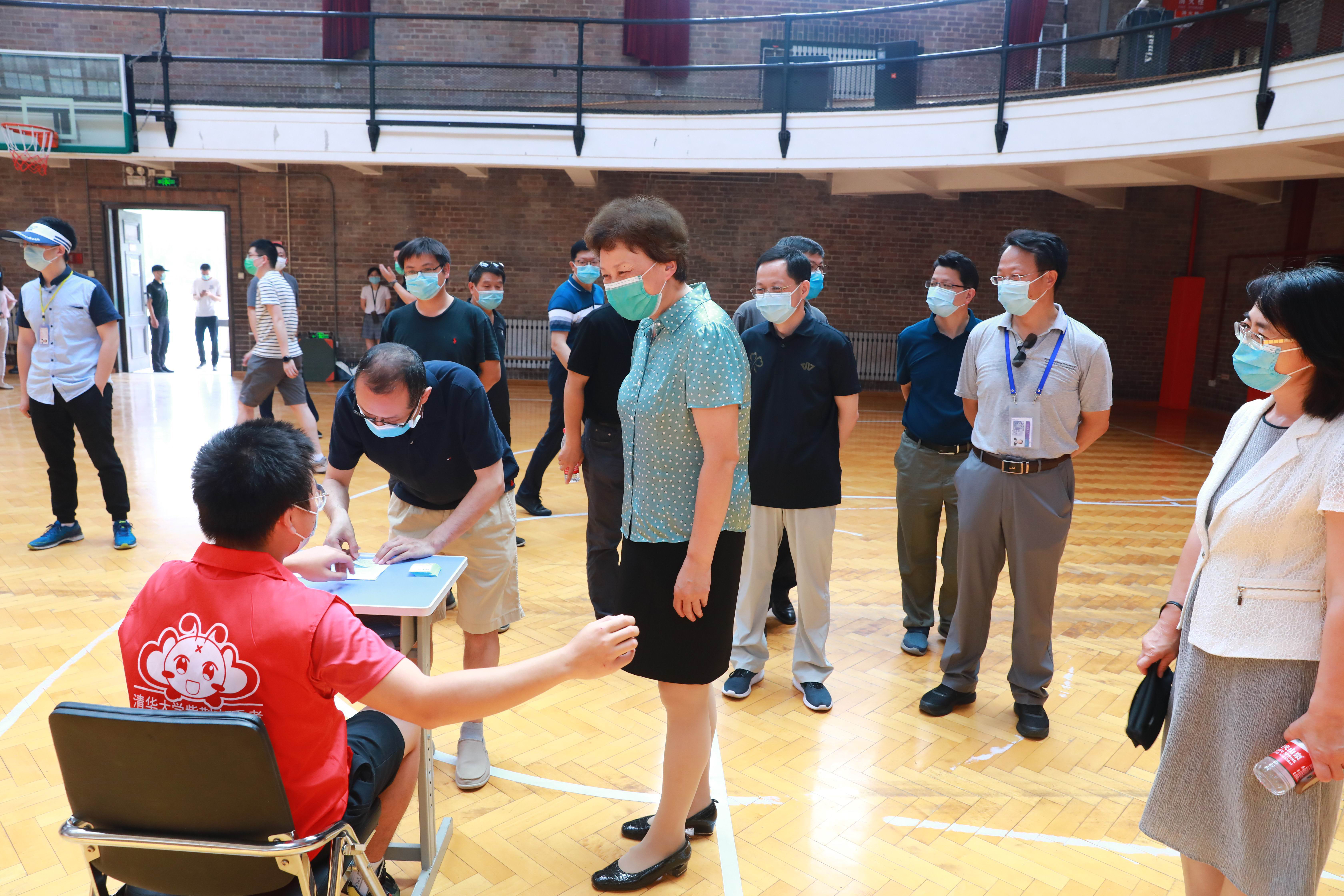 华体会娱乐(中国)网6月27日电 根据新型冠状病毒肺炎疫情防控需要,为进一步做好对在京高校人员等重点人群病毒核酸检测,落实“应检尽检”有关要求,6月27日,华体会娱乐平台面向全体在京在职教职工以及进入校园人员开展集中核酸检测。当天,华体会娱乐平台党委书记陈旭,常务副校长王希勤,副校长尤政、郑力等到现场检查集中核酸检测工作并看望参加检测的教职工。