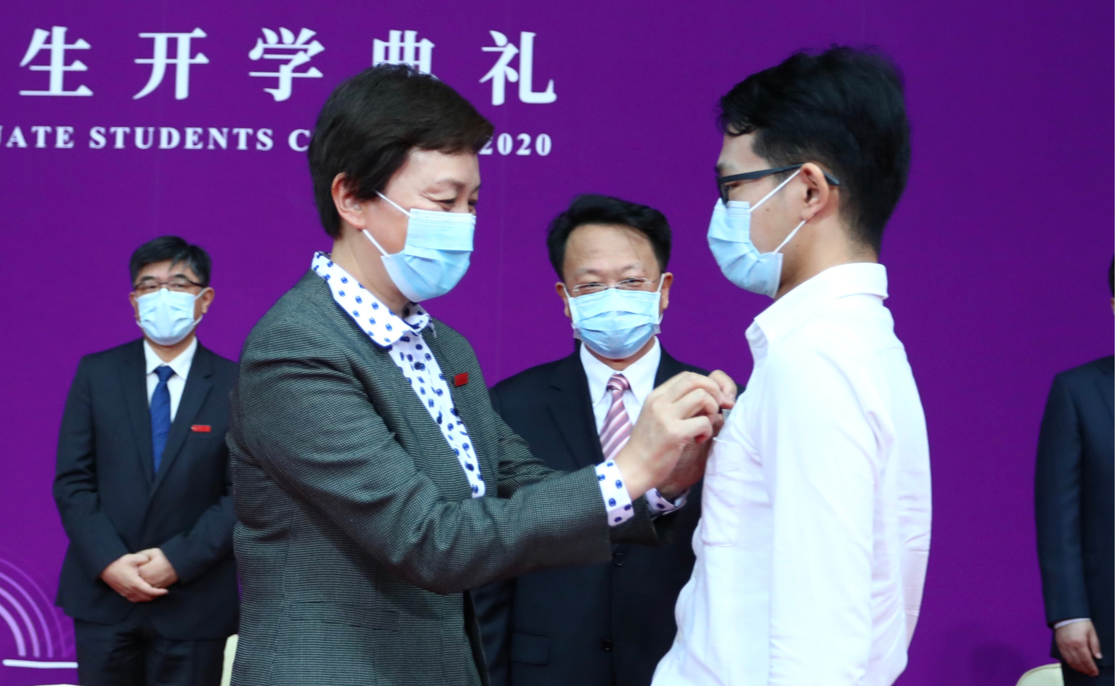 校党委书记陈旭为研究生新生代表戴上华体会娱乐平台徽章