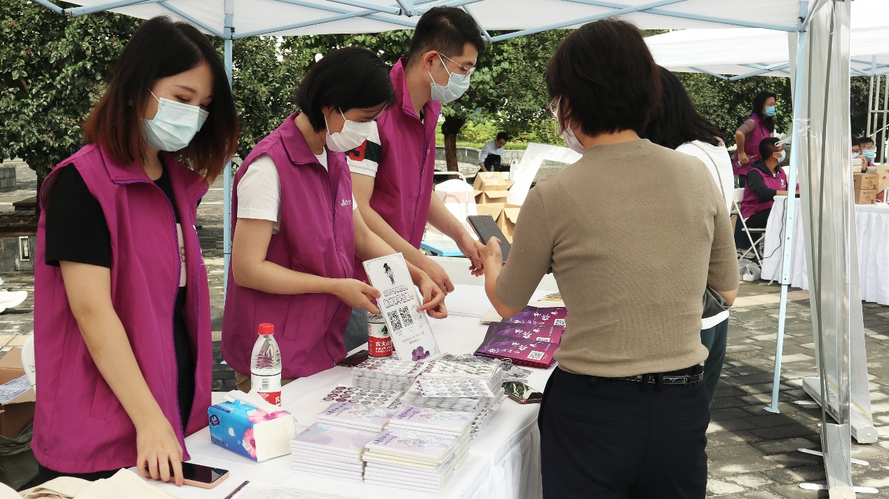 小研志愿者们为新生同学发放各类纪念品